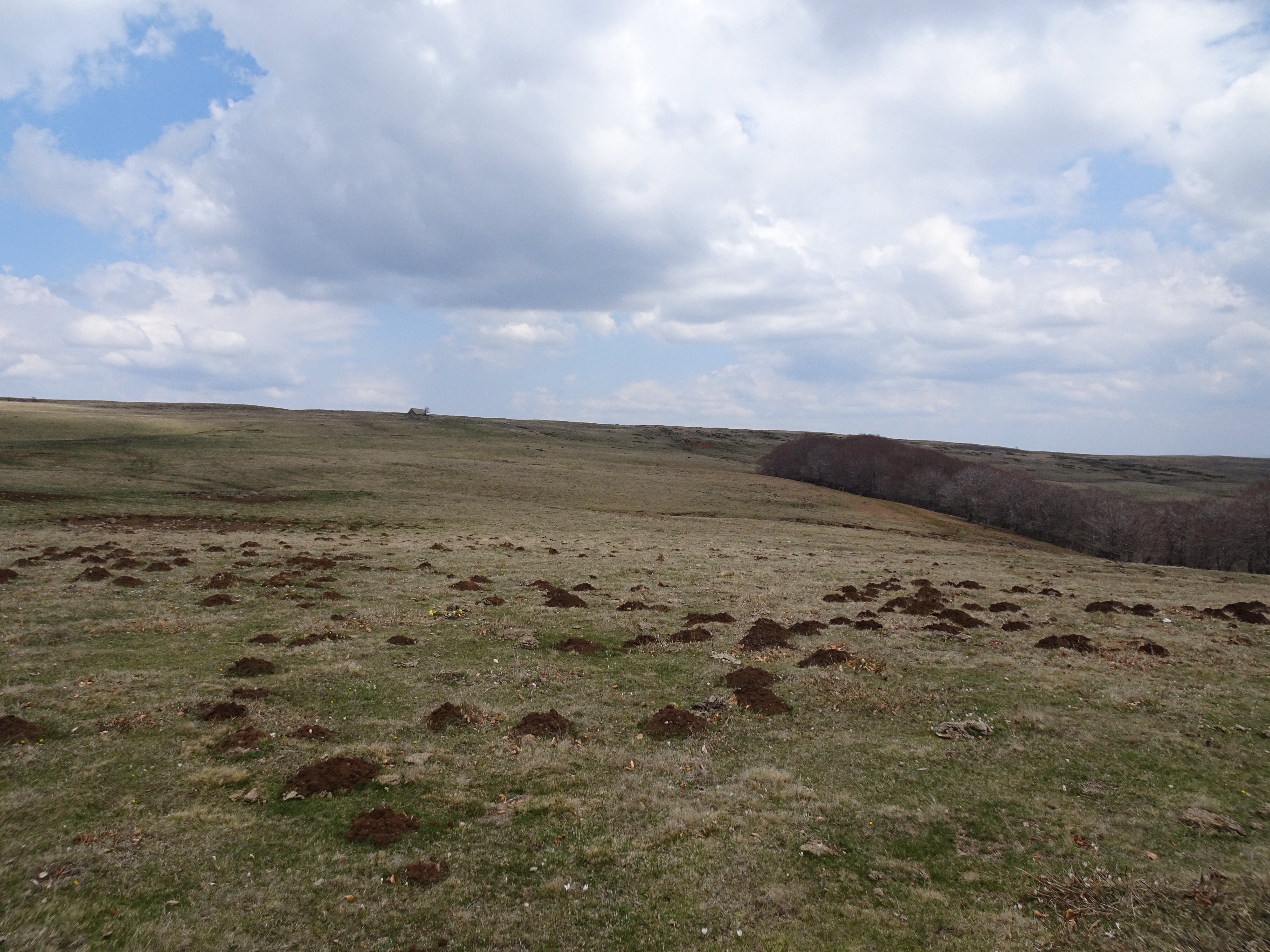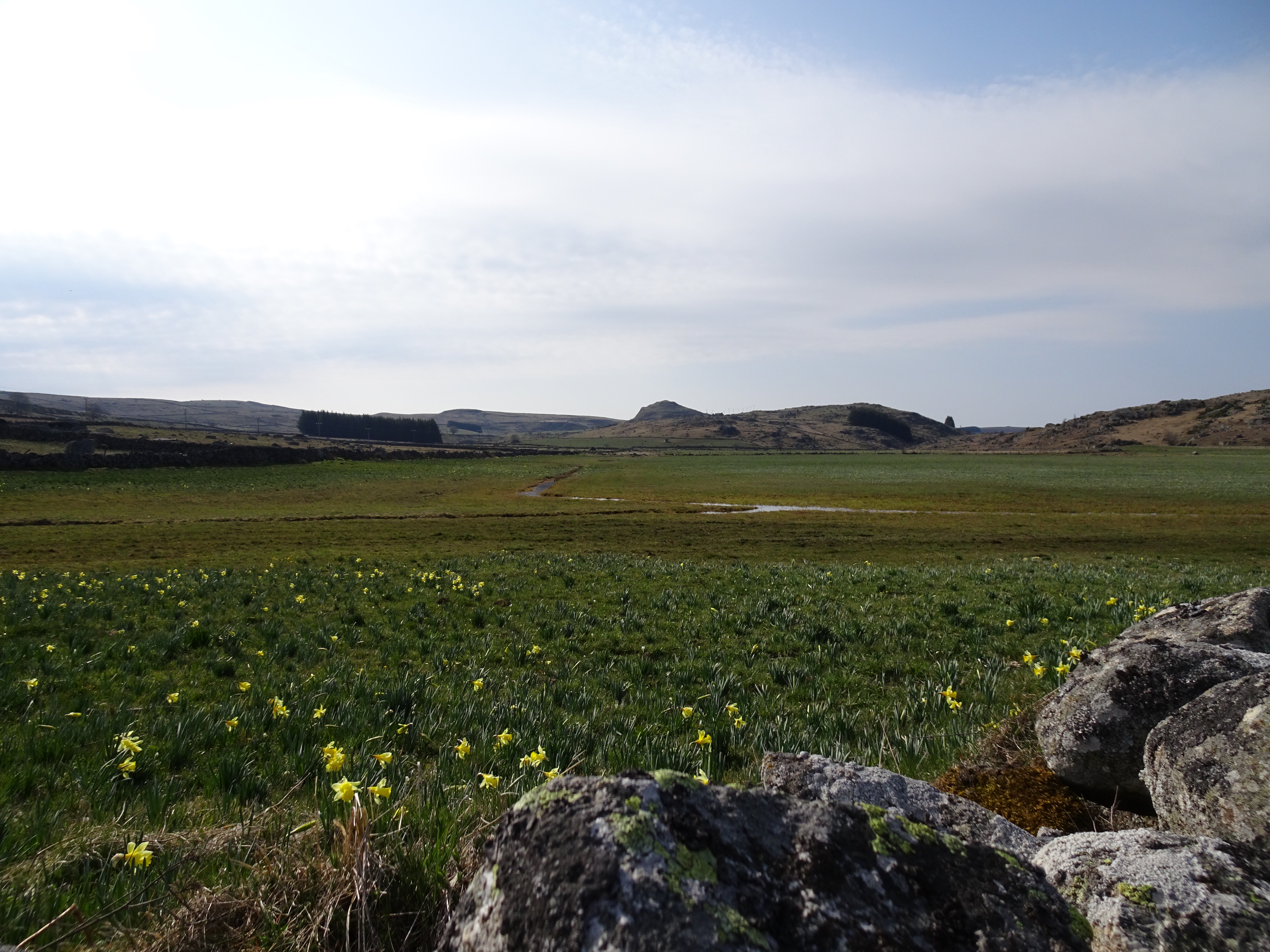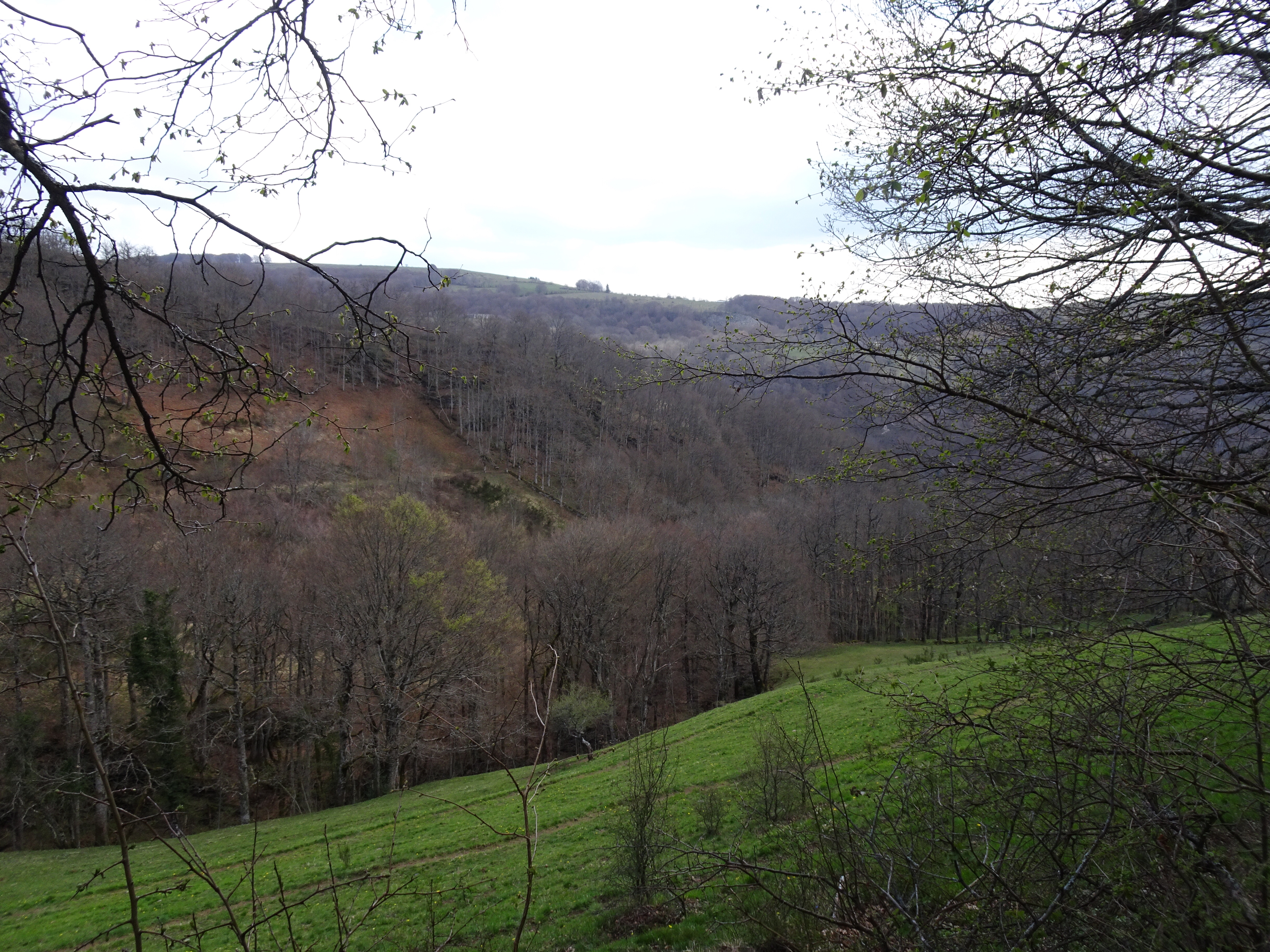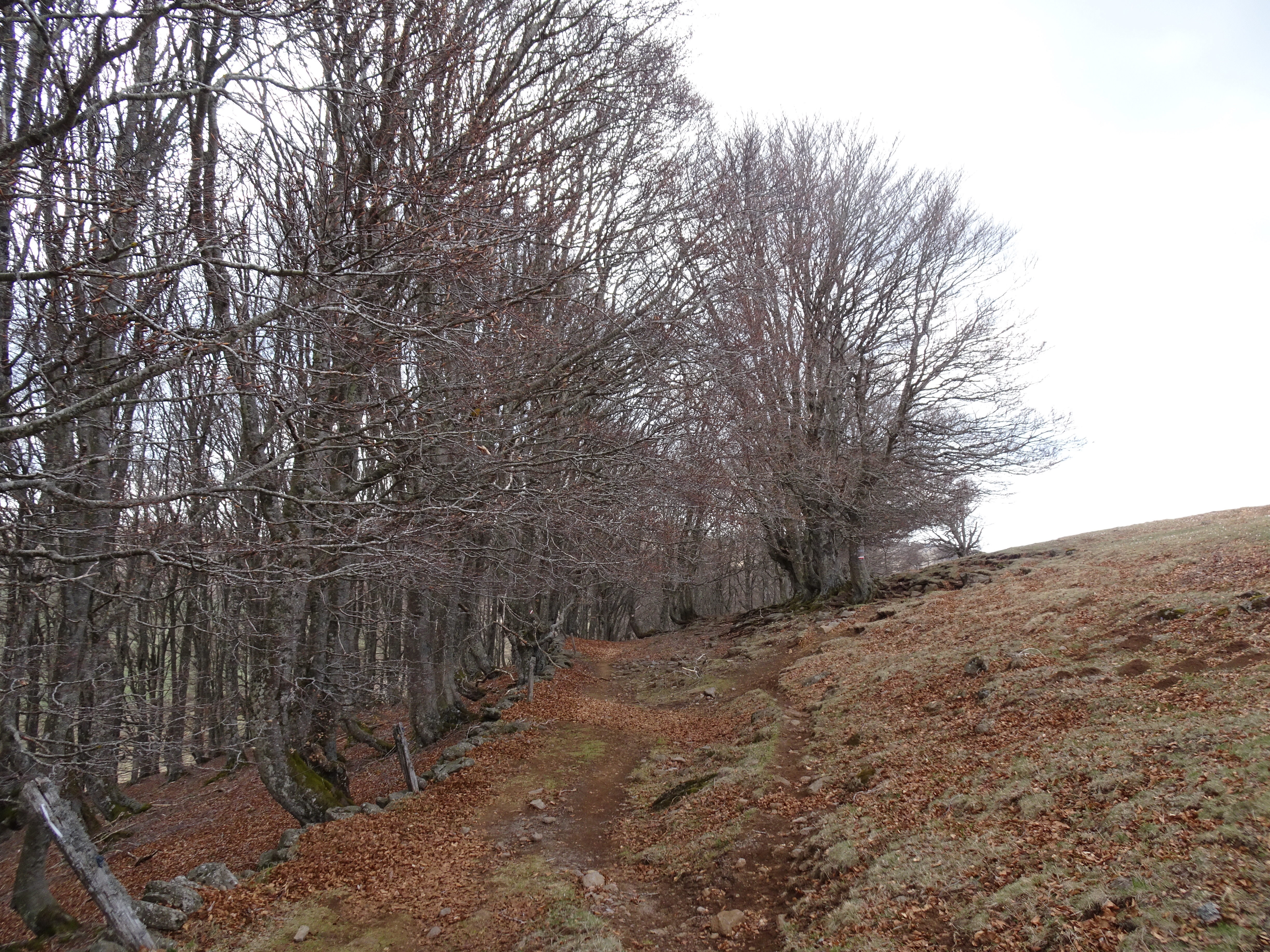Il a gelé cette nuit, le thermomètre est descendu à -1 degré. La semaine dernière jusqu’à -8 degrés, finalement je ne regrette pas d’avoir différé mon départ de 2 semaines. Apres moins d’un km parcouru le paysage change totalement, nous voici dans l’Aubrac. Avec le givre, les couleurs du matin, les prairies de l’Aubrac, c’est magique. Très peu d’animaux, la transhumance n’aura lieu qu’en mai.