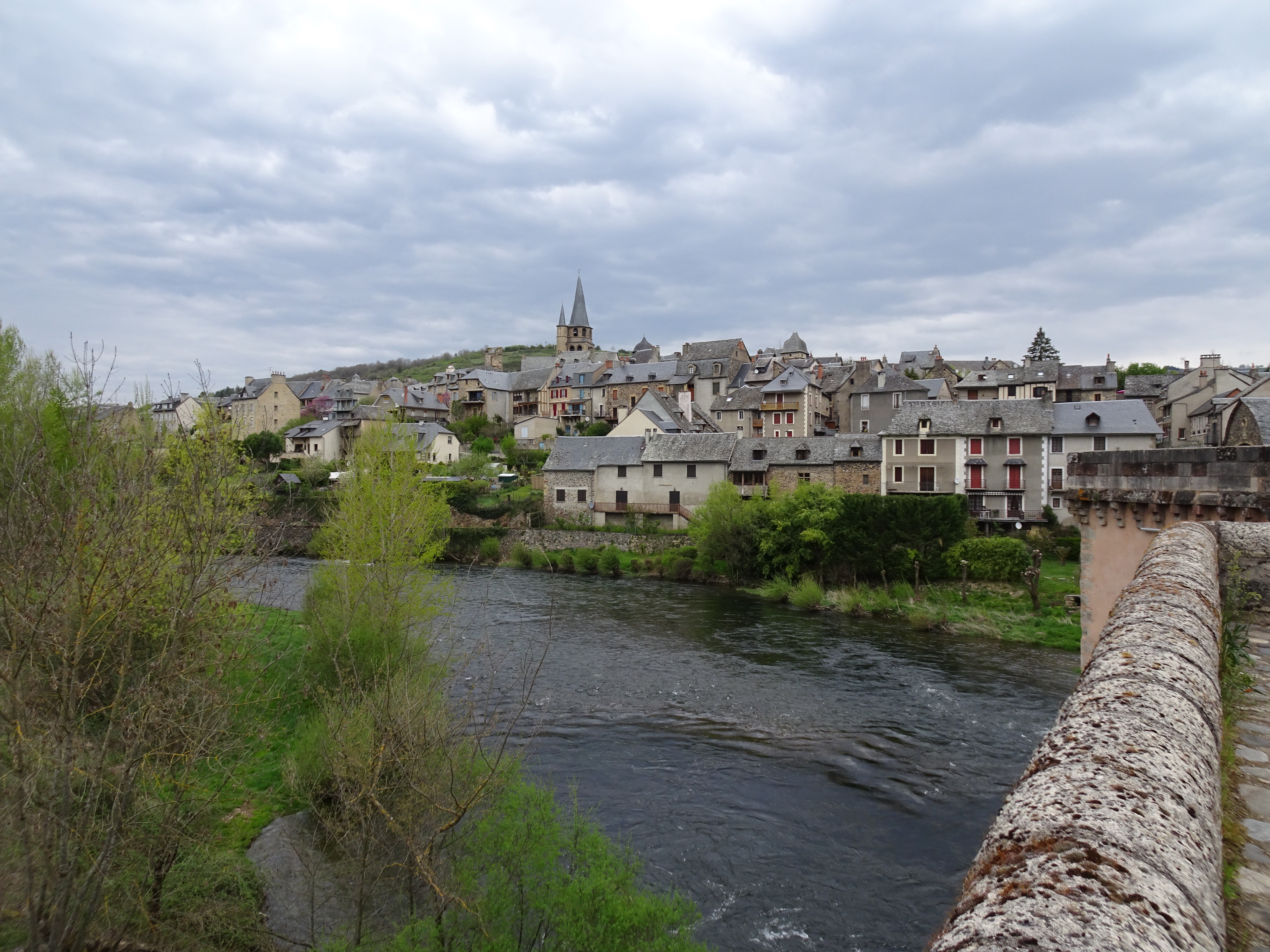 Une petite montée bien raide et de nouveau 3km de descente pour atteindre St Côme d’Olt (alt. 360m) On traverse le Lot pour une remontée à 510m et une descente à nouveau vers Espalion (alt 336m). Je voudrais bien connaître celui qui a tracé le chemin!!!! Espalion est lui aussi traversé par le Lot!