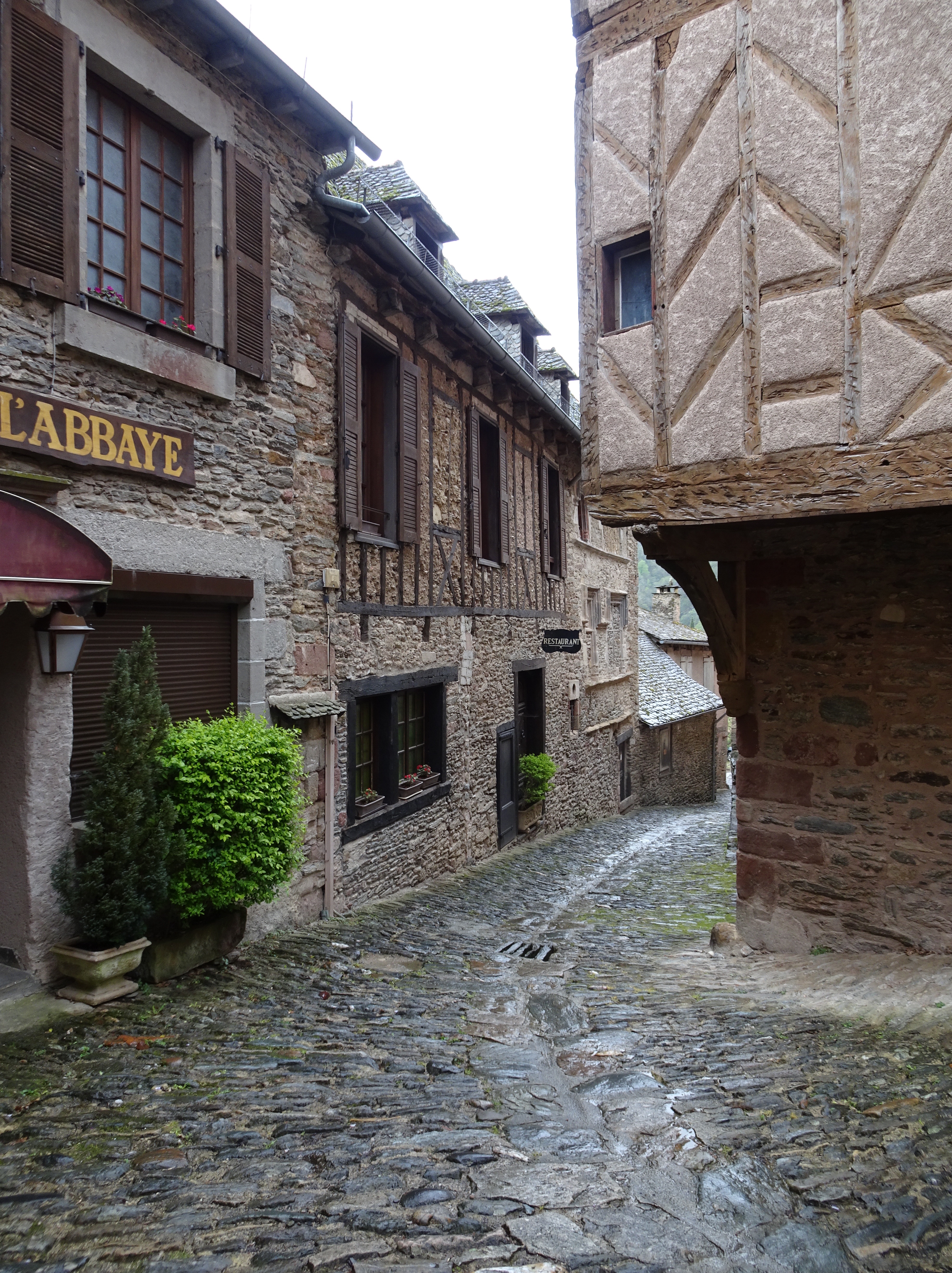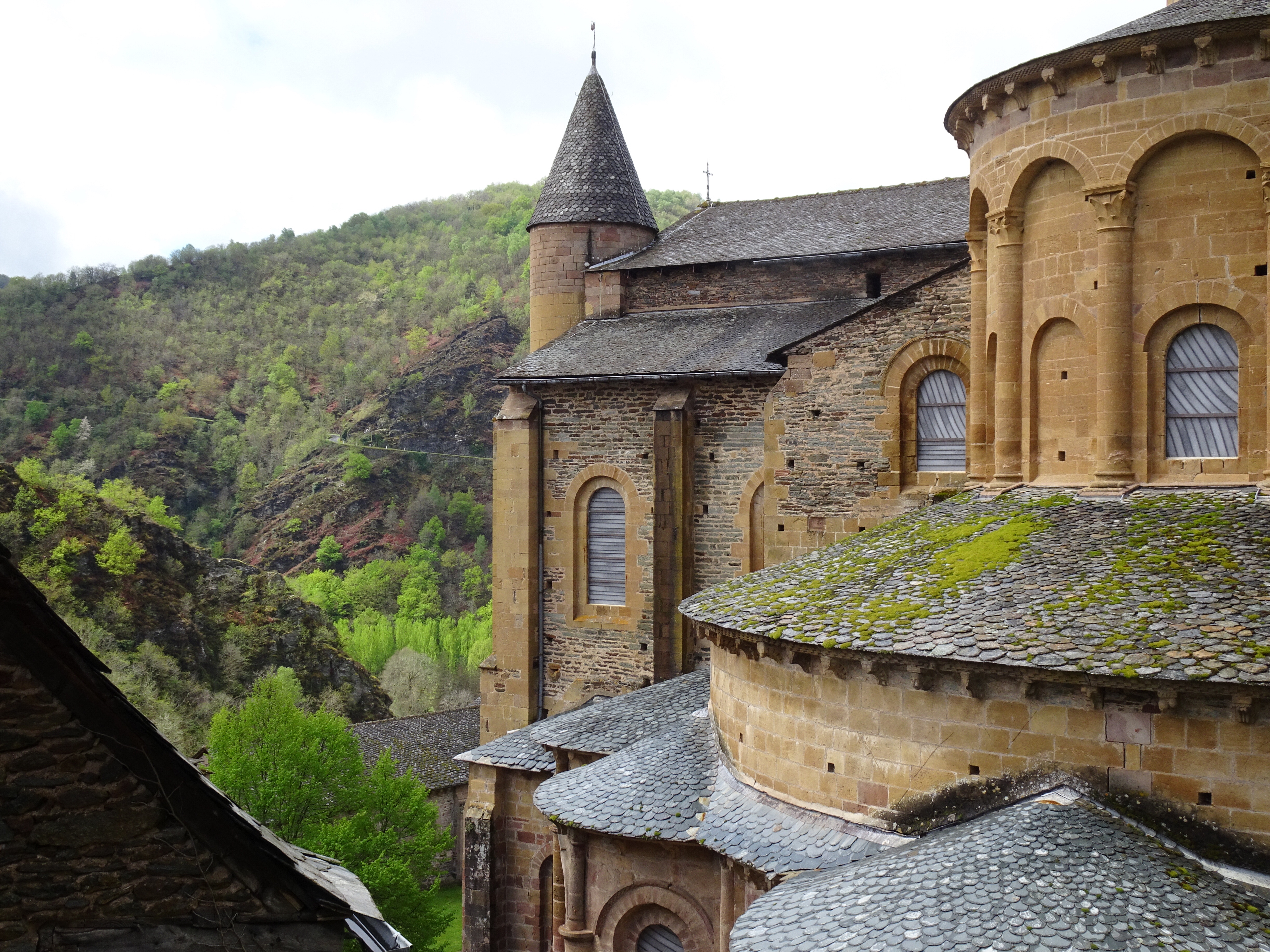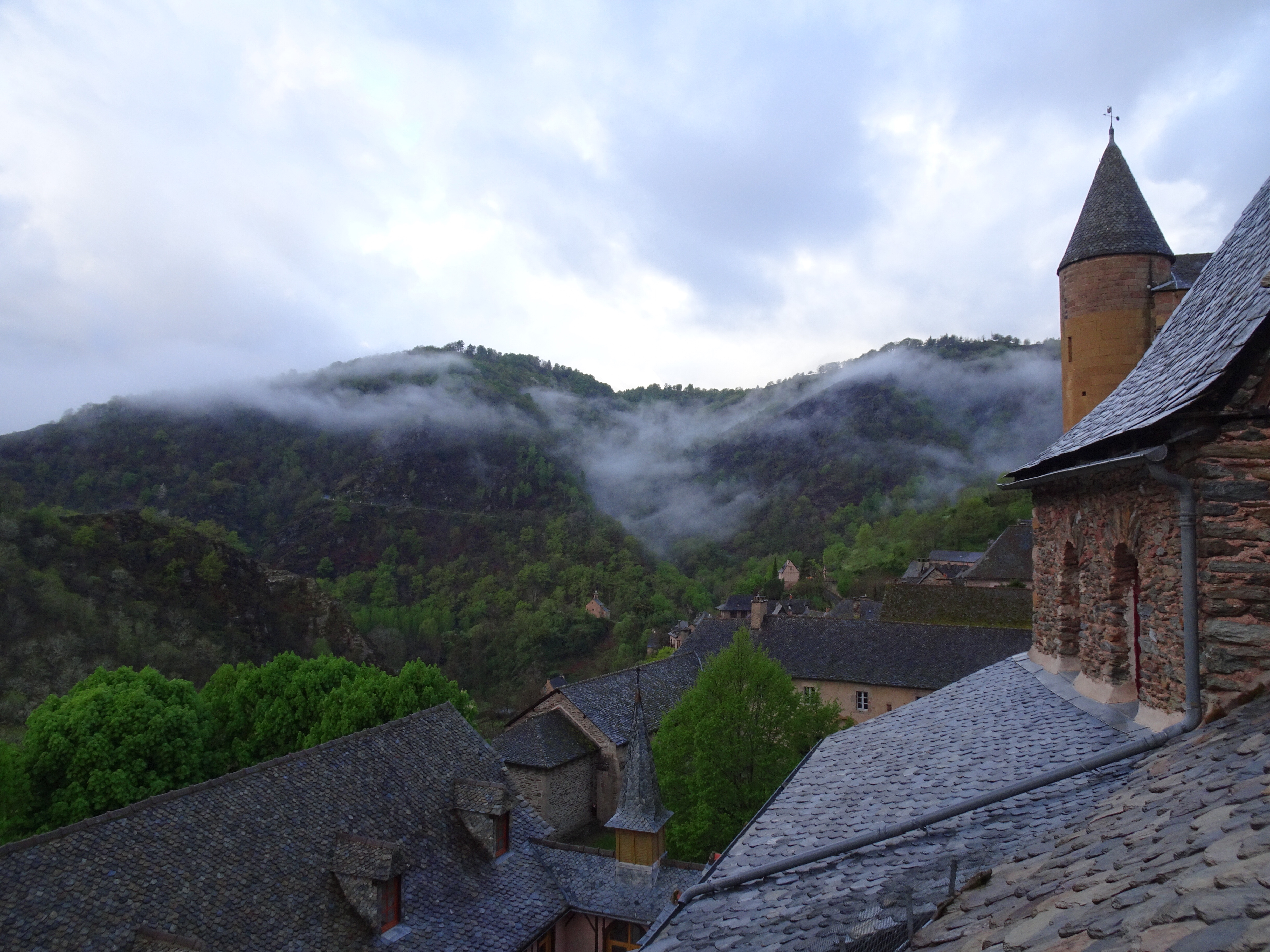 Arrivé à Conques, j’ai le choix entre le gîte communal non chauffé ou l’accueil des pèlerins de l’Abbaye Sainte-Foy qui est chauffé. Je choisis la 2nde solution. J’aurais le plaisir d’y retrouver et de dîner avec le randonneur Allemand qui m’avait pris en photo sous la pluie lors de ma 2ème étape ainsi que les 2 mayennaises rencontrées à Montbonnet.