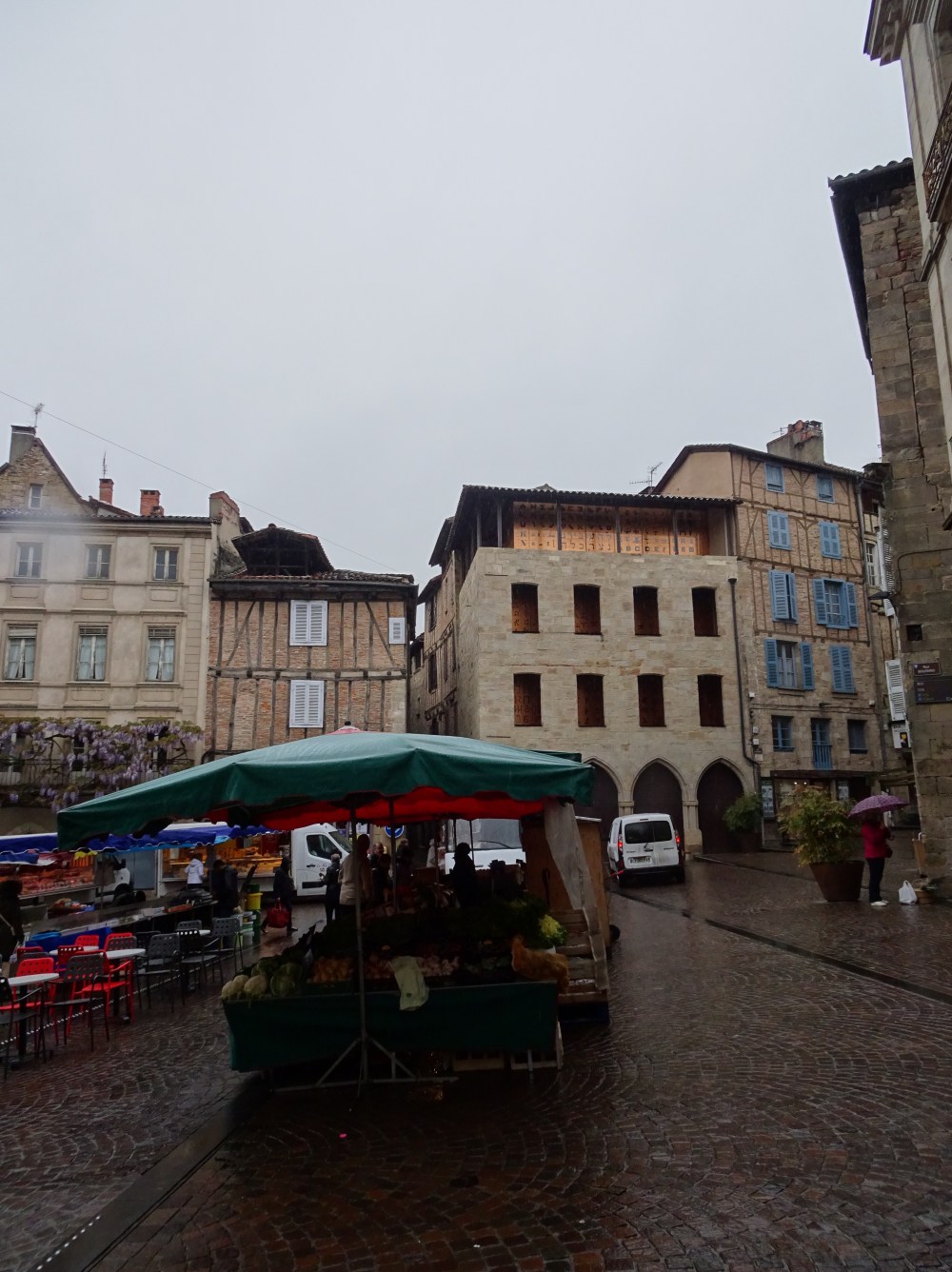 Malgré tout, il faut repartir, continuer et la journée s’annonce encore très pluvieuse en surfant sur la dynamique des derniers jours. Un petit tour dans Figeac et son marché, puis sortie de la ville pour monter sur les hauteurs du Quercy et rejoindre le petit village de Béduer.