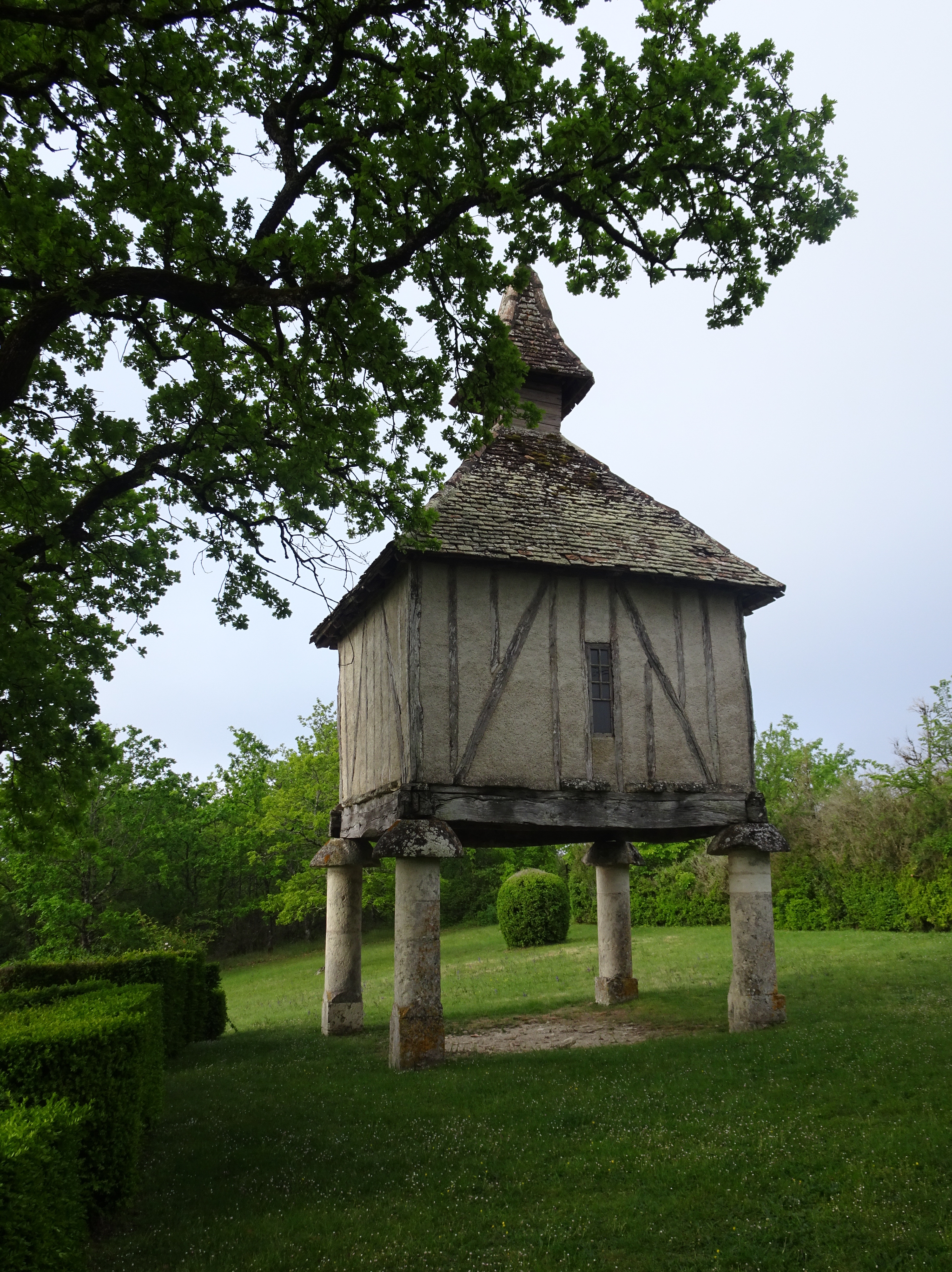 Je passe à proximité d’un ancien pigeonnier monté sur pilotis pour empêcher les prédateurs de venir détruire les nids et manger les œufs.