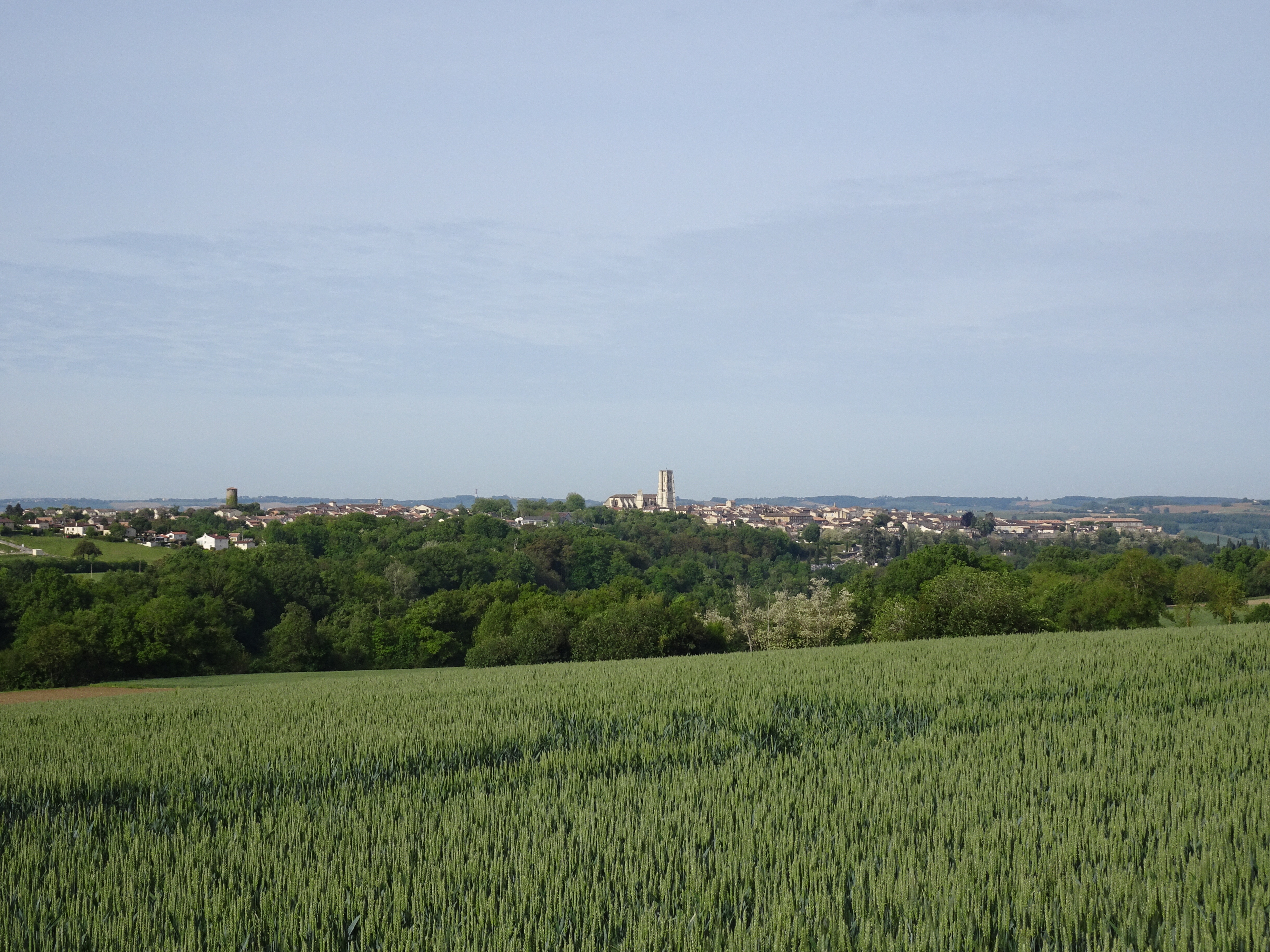 Après la nuit passée au gîte communal, dans une ancienne salle de classe ou 8 lits sont sommairement installés, une longue étape pour rejoindre La Romieu m’attend. Je pars tôt afin de pouvoir gérer au mieux l’effort et pouvoir visiter Lectoure qui selon mon guide (le Miam Miam Dodo) sera une étape inoubliable. Cette étape sans difficulté majeure est assez vallonnée puisque l’on marchera entre 80 et 210m d’altitude, au milieu des champs de blé et avant Lectoure des champs de fraises, de poireaux, ou bien d’aïl.