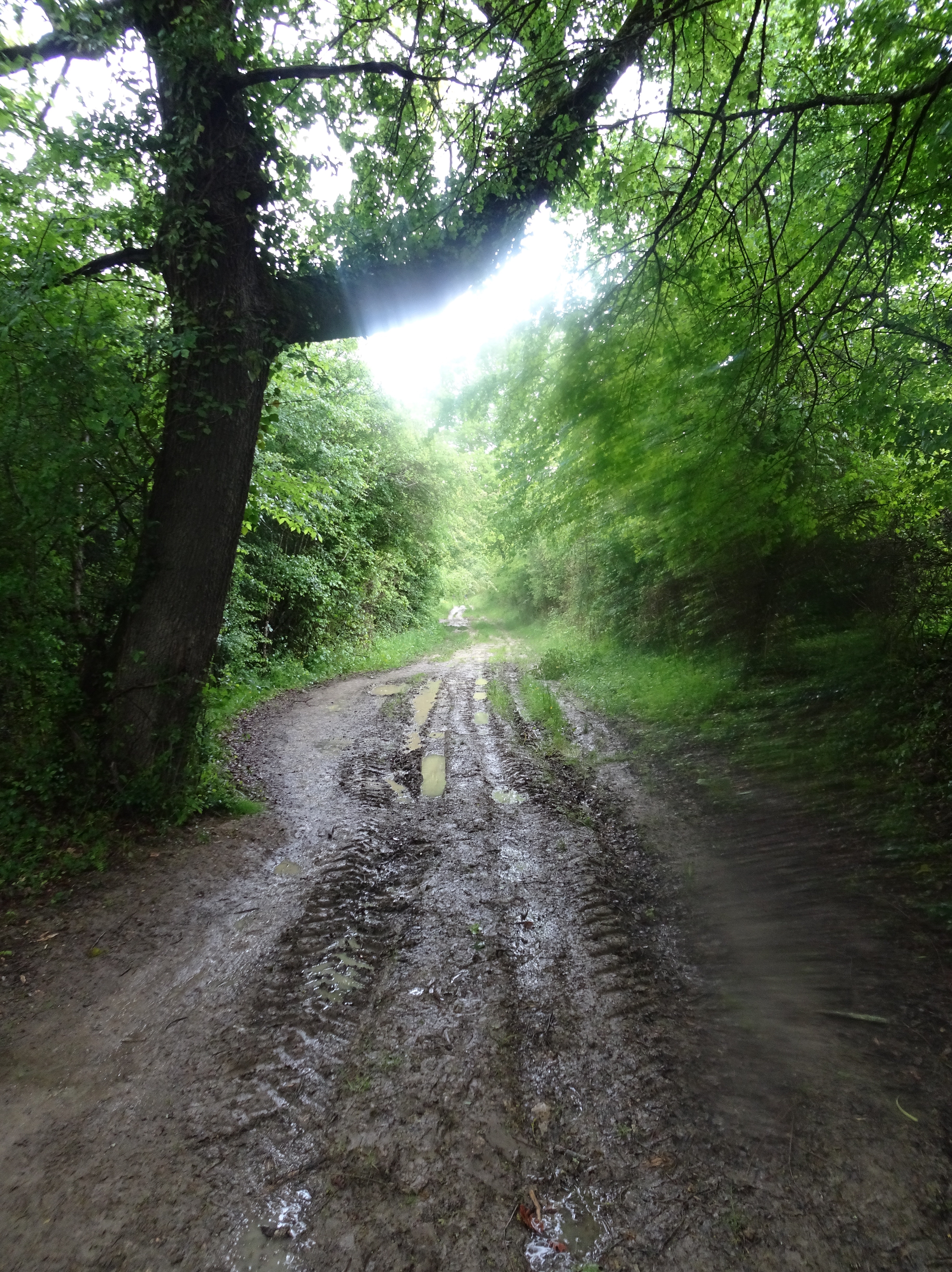 Après le Passage près de La Chapelle Sainte-Germaine, la pluie commence à tomber, je trouve refuge sous une grange pour ma pause déjeuner. La pluie ne cessera de tomber jusqu’à mon arrivée à Condom. D’où l’importance d’être bien protégé (Condom, protégé, vous suivez?) Le terrain étant constitué de terre glaise bien collante, je vous laisse imaginer l’état dans lequel j’arrive à mon gîte. J’y retrouve Jo et Serge, ainsi que Martine et Didier, déjà rencontrés à plusieurs reprises. Pour Martine et Didier nous étions dans le même Donativo au Puy-en-Velay le 15 Avril. On ne s’est revu que le 5 mai dans le même gîte à Espalais. Dans le gîte une Namibienne croisée également sur le bord du Canal dimanche. C’est aussi ça le chemin.