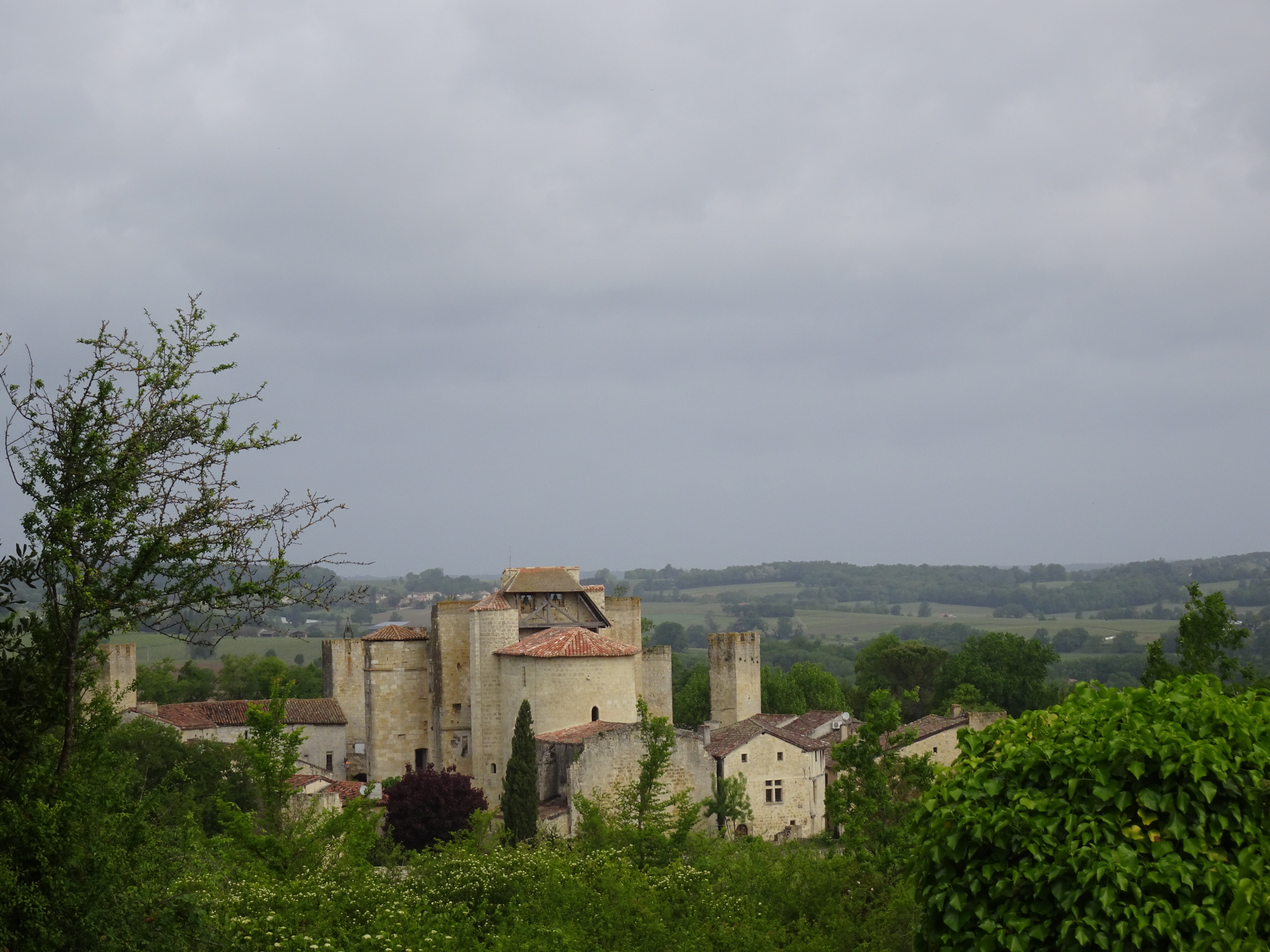 Pas le temp de m’attarder je reprends la route par les collines et fait un petit détour pour aller visiter le village de Larressingle (le petit Carcassonne) et je file vers Montreal-du-Gers ou j’espère arriver pour déjeuner avant la pluie, raté! Après déjeuner une petite dizaine de kms le long des vignes d’Armagnac pour arriver à Lamothe (4 habitants) ou est situé mon gîte d’étape de ce soir. Avec le coucou que j’entend régulièrement, s’ajoute à chaque point d’eau les chants des grenouilles.