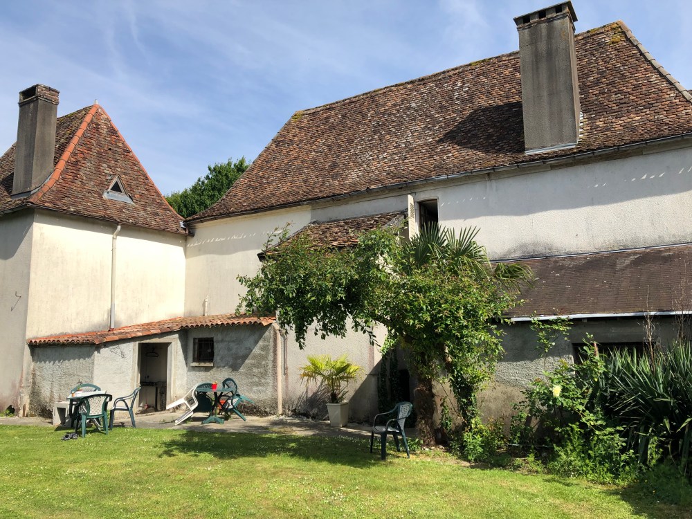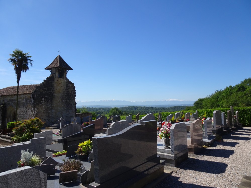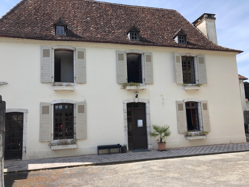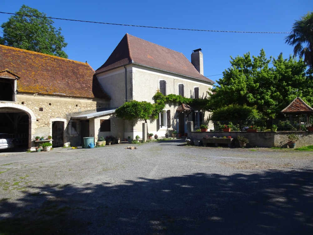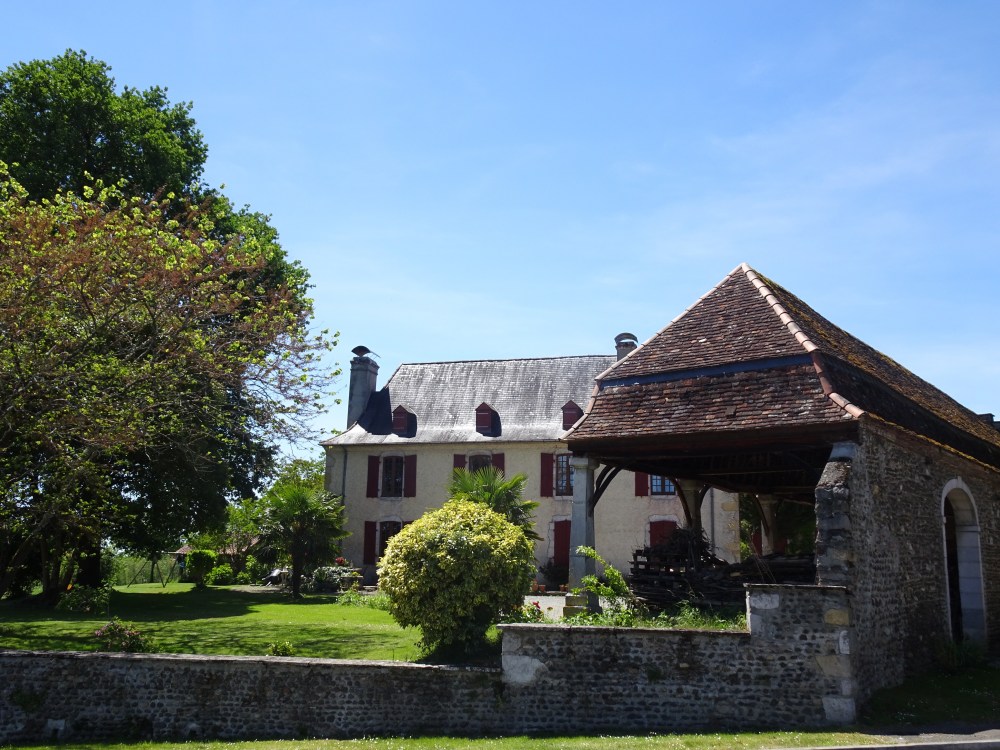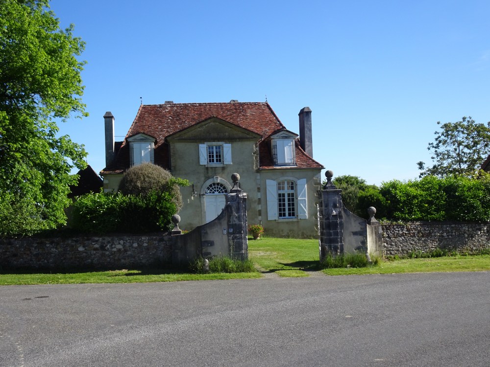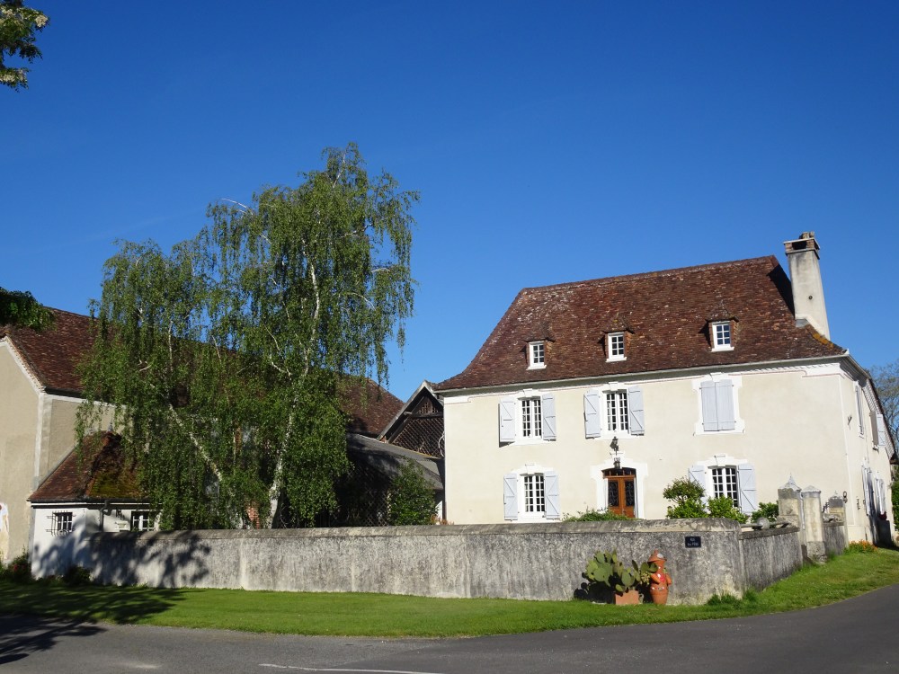 Encore une belle journée qui s’annonce puisque le ciel bleu, le soleil et le relief offrent une vue dégagée sur les sommets enneigés des Pyrénées. Journée agréable malgré une étape avec encore beaucoup de goudron. Tout au long de la journée je découvrirai de jolies demeures béarnaises avec les toits à 4 pentes et en tuiles, aux murs construit avec les pierres trouvées dans les champs et jointées à la chaux.