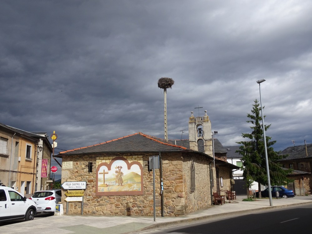 Une des belles surprises de la journée est la musique qui semblait sortir d’un hangar en arrivant à Camponaraya. Cette musique me rappelait celle jouée dans l’Ouest de la France et que la ville de Lorient met à l’honneur tout les ans avec son festival Interceltique. En me rapprochant je découvre une « Escuela de gaitas y música traditional”, donc une “école de cornemuse et musique traditionnelle” (écoutez la petite captation de leur répétition). Ce qui n’est pas si surprenant puisque le nord ouest de l’Espagne a été occupé par des peuples Celtes. Certains, des mécréants sans doute, vont même jusqu’à dire que le Camino serait à l’origine un chemin Celte. Demain je serais en Galice, une des deux régions avec les Asturies ayant gardé une culture Celte.