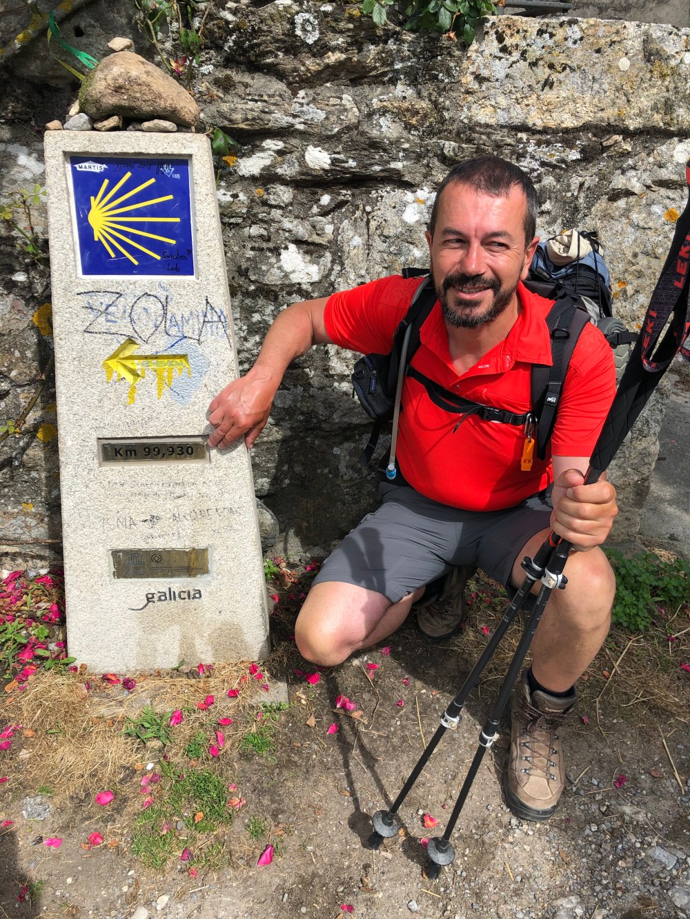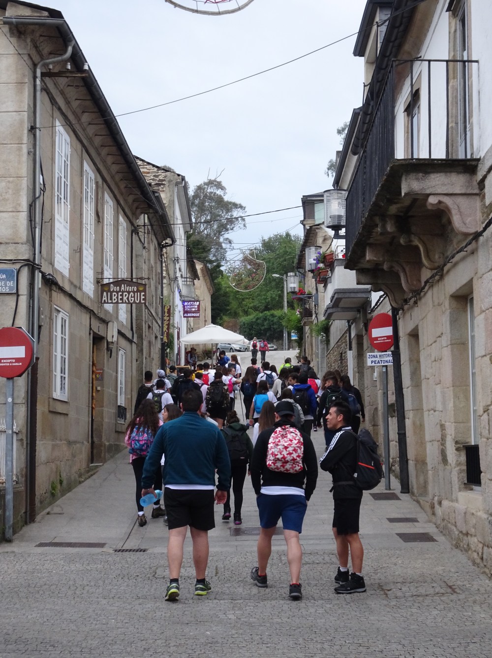 Aujourd’hui, on est samedi et on va passer la borne indiquant les 100km avant Santiago. Il faut savoir que pour obtenir la Compostela, le certificat en latin attestant que vous avez effectué le pèlerinage de Santiago, il faut avoir parcouru au minimum 100km à pied et 200km à vélo. De nombreux Espagnols, dont beaucoup de groupes de collégiens et lycéens débutent donc le Pèlerinage à Sarria. La première chose demandée pour obtenir la Compostela est de faire ce pèlerinage dans un but religieux. Ce n’est pas mon cas, je n’irai donc pas la chercher. Je n’ai pas besoin de certificat, j’ai des souvenirs, des rencontres, des moments de joie, de doute, de douleurs et des images plein la tête.