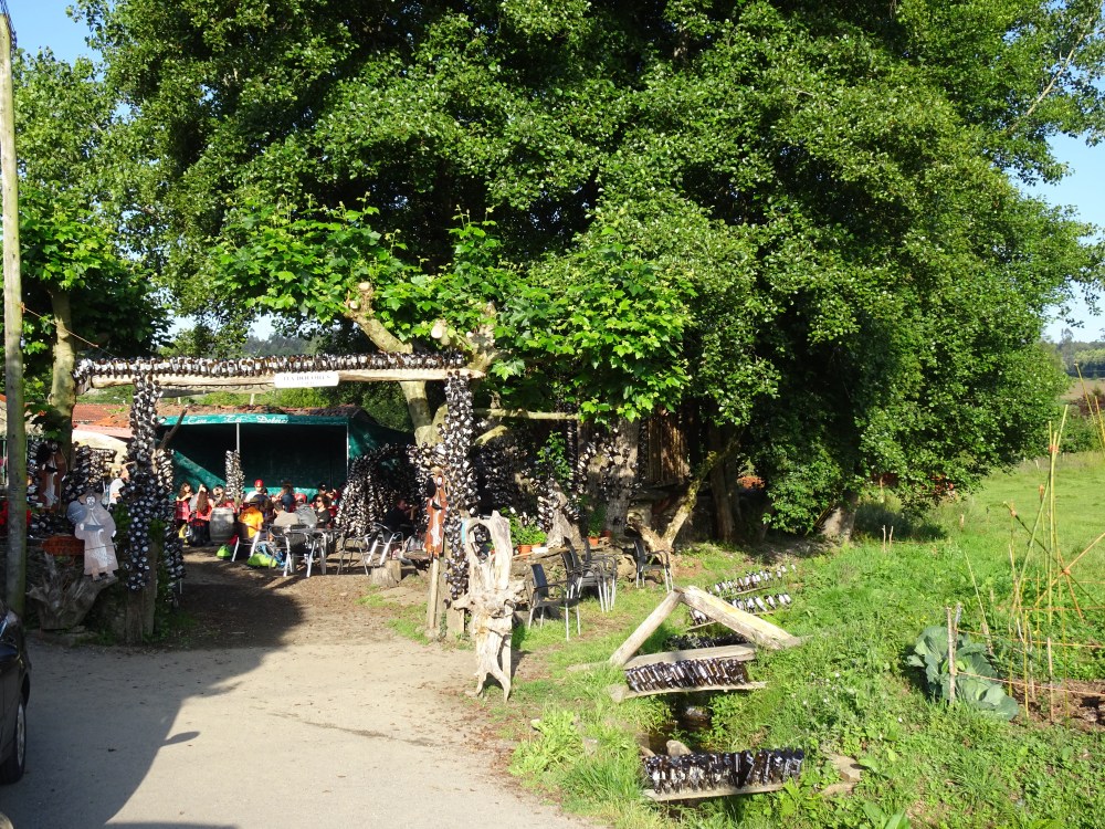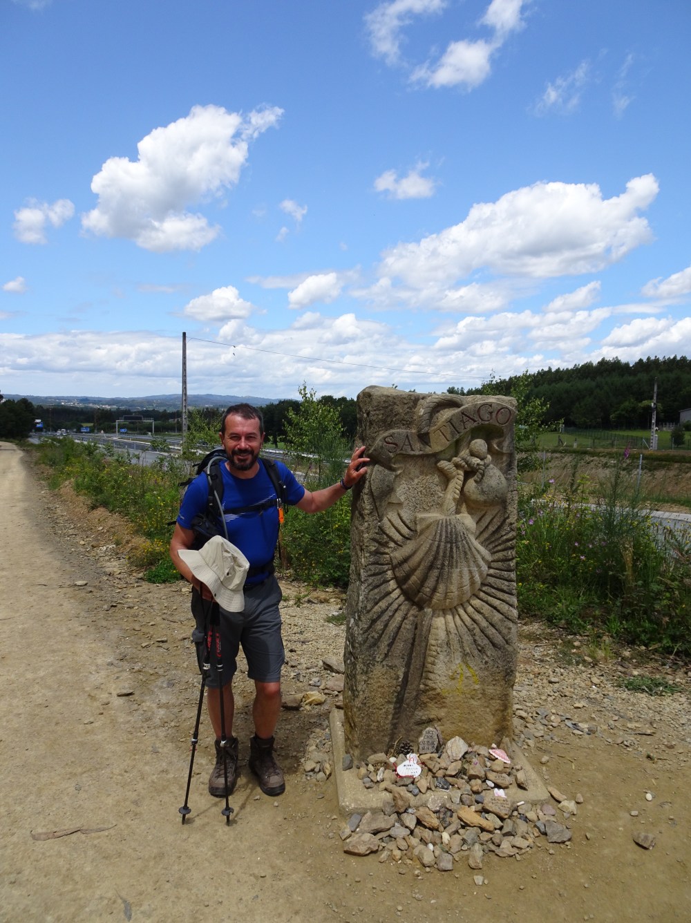 3km après mon départ, je vais croiser attablé à la terrasse d’un bar d’Arzúa, Roland, un pèlerin aperçu la 1ère fois à Larceveau en France le 23 mai. Il souffre depuis peu du même mal que moi à l’époque et diminue ses étapes pour arriver à Santiago. Puis peu après, je croiserai 4 autres amis pèlerins de ces derniers jours et on se dit à demain à Santiago, je trace mon chemin.