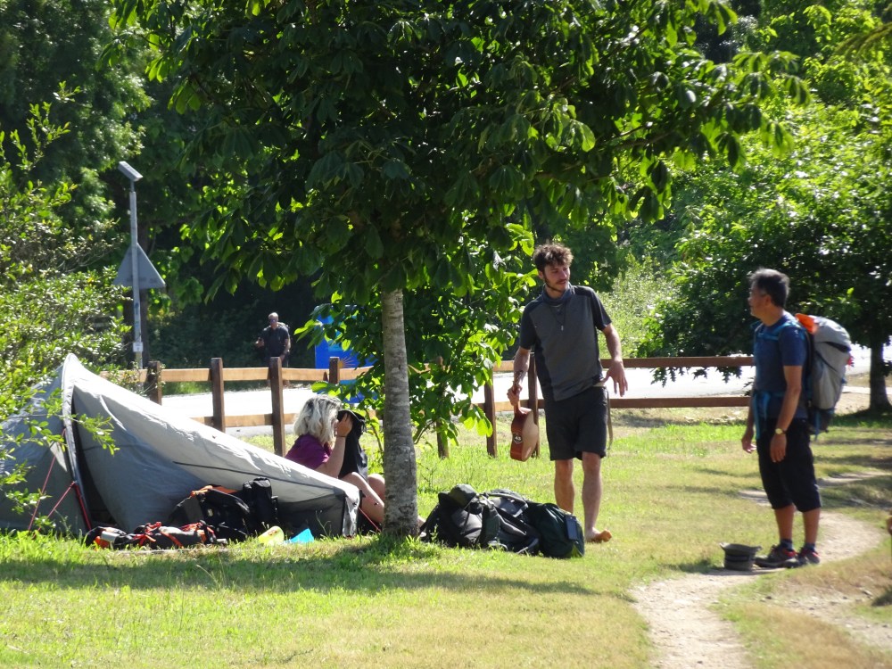 Je croiserai aussi les 2 jeunes Belges, qui dorment sous tente, jouent d’une toute petite guitare et chantent souvent. À Sarria, ils ont passé l’après-midi à chanter, jouer de la musique et boire des bières à côté de notre albergue. Ils sont un peu embêté et me demandent si je n’ai pas trouvé leur paquet de tabac, qui ne contenait pas que du tabac… Et bien non, désolé.