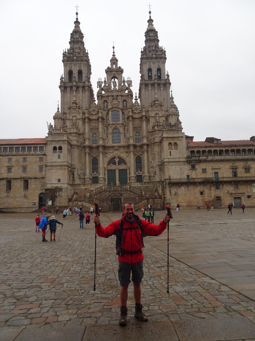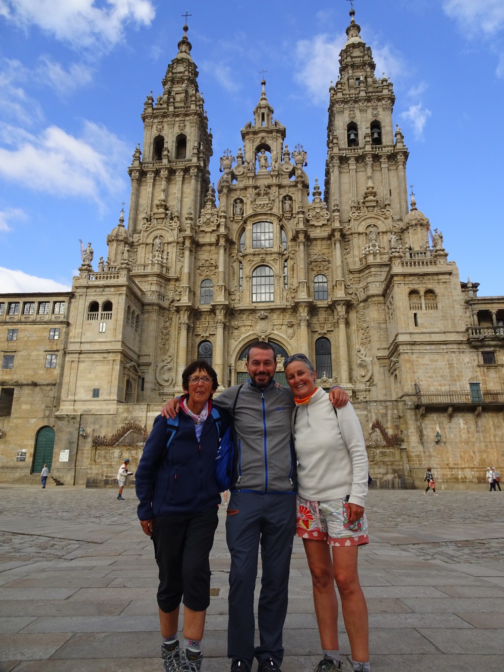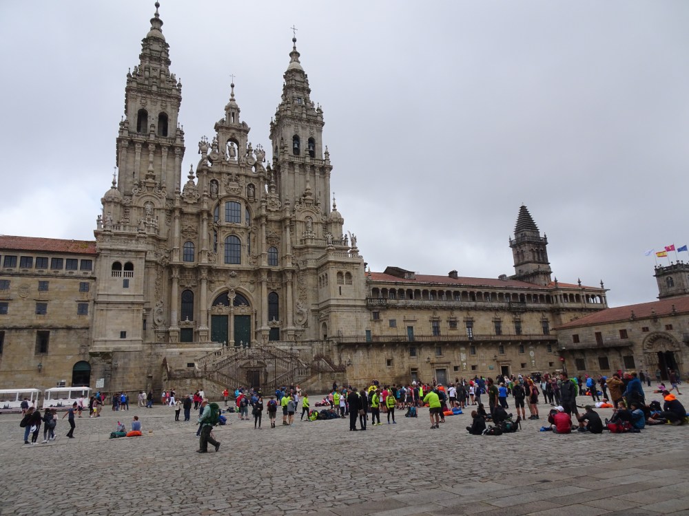 Cathédrale de Santiago de Compostela (l’arrivée, encouragé par le photographe je lève les bras au ciel)